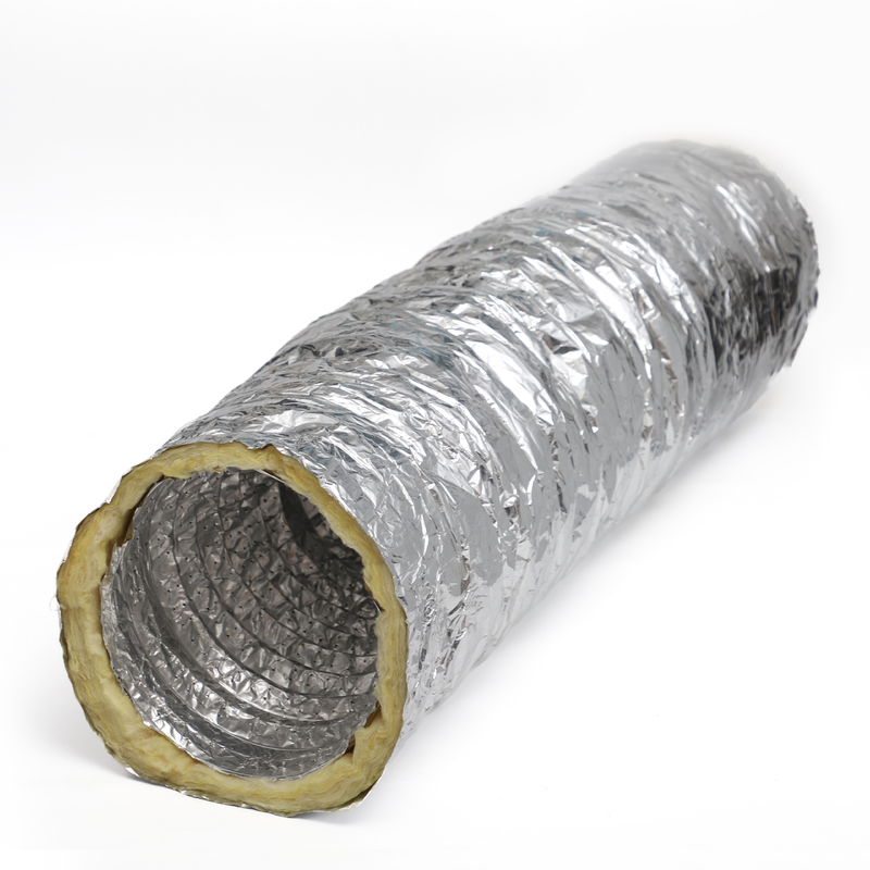 Meerlaagse constructie:Bestaat uit een licht geperforeerde binnenkern, ingekapseld door glasvezelisolatie en afgewerkt met een duurzame aluminium/polyester gelamineerde buitenmantel.